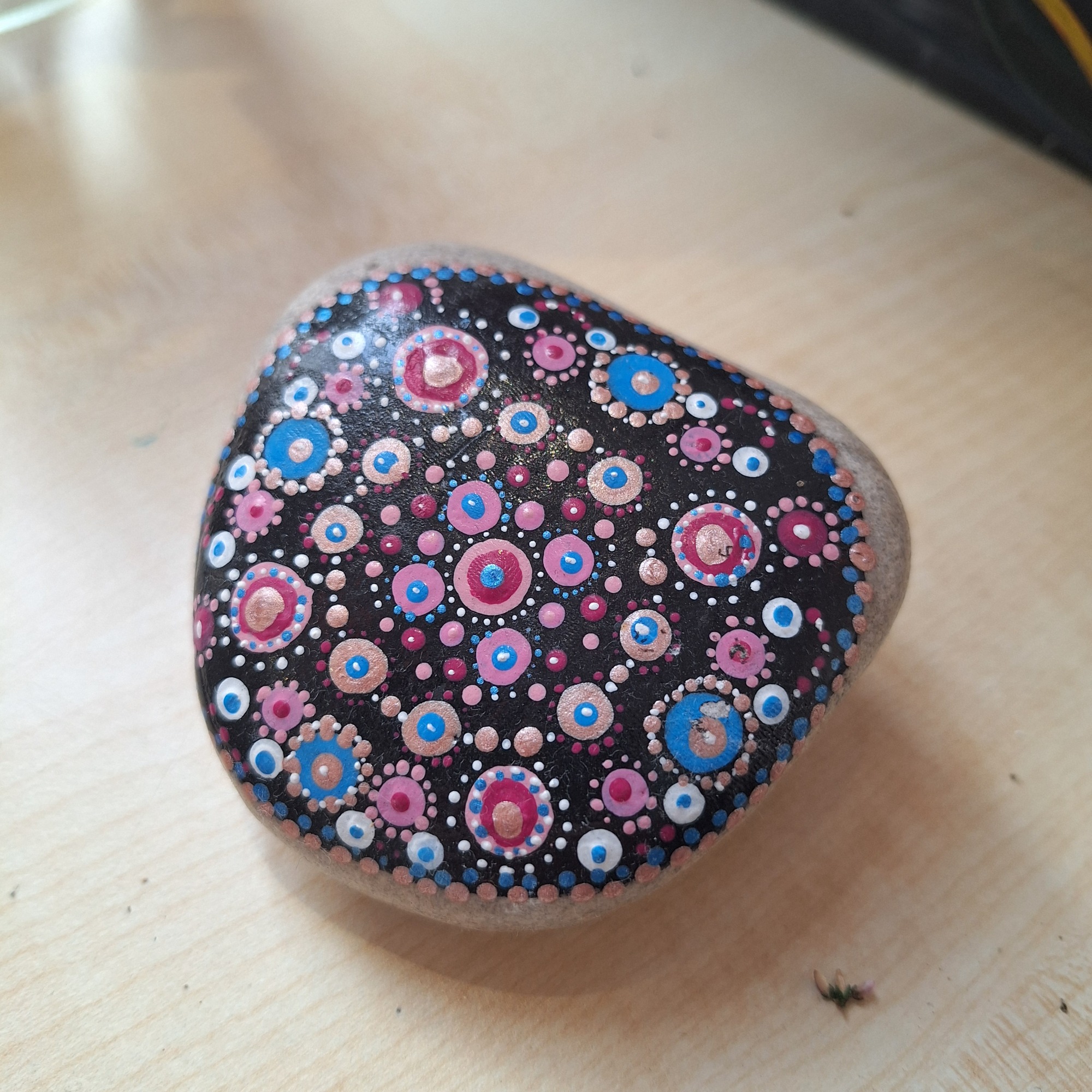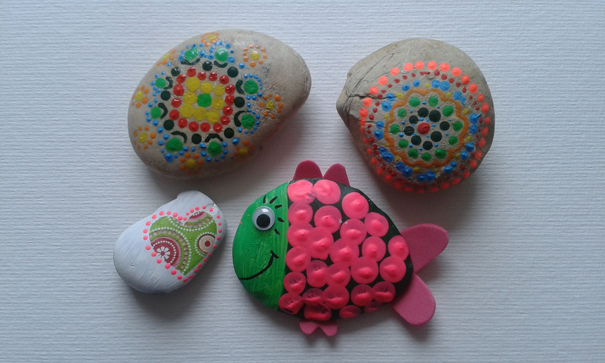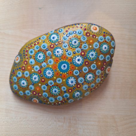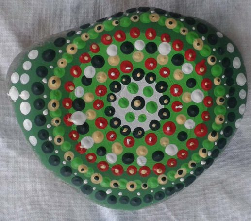 Steine aus Lech, Wertach oder Baustellen werden durch Farbe, Muster und Fantasie zu kleinen, ausdrucksstarken Kunstwerken
